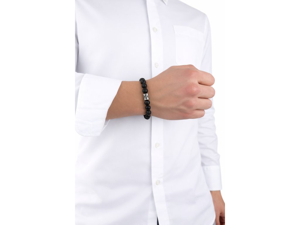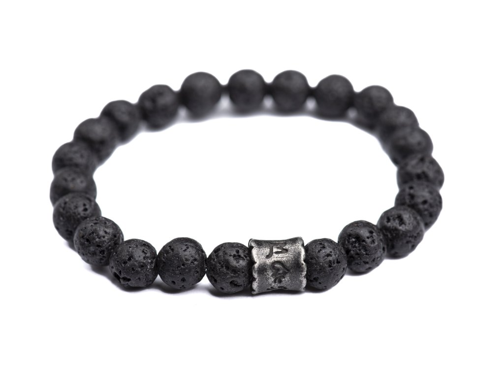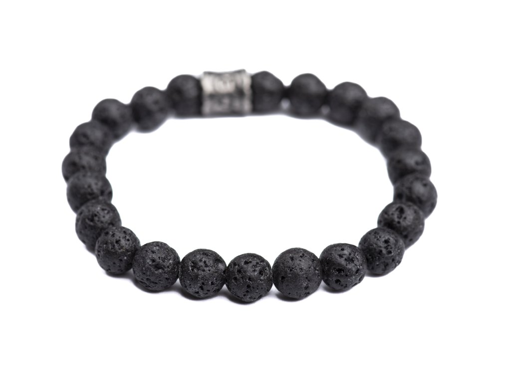 Elegantní náramek z lávových kamenů s decentním kovovým detailem, který spojuje sílu přírody s moderní noblesou.