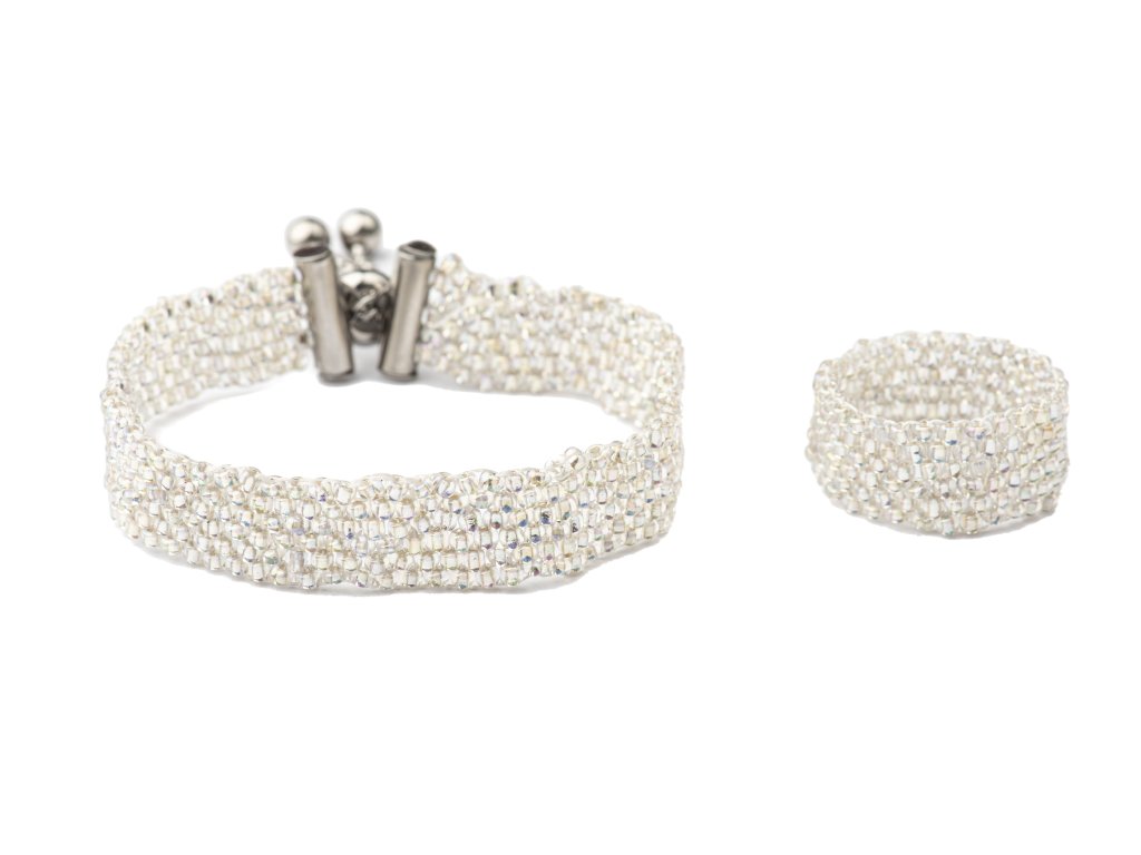| Materiál: | Korálky Miyuki, chirurgická ocel - stříbrná |