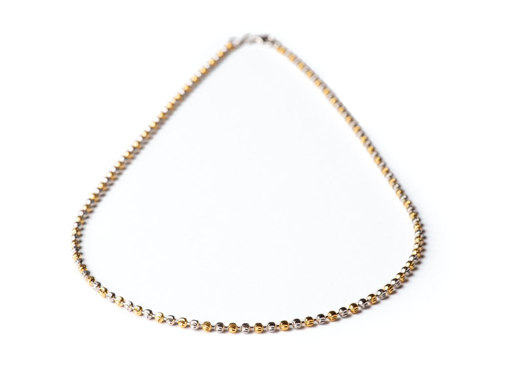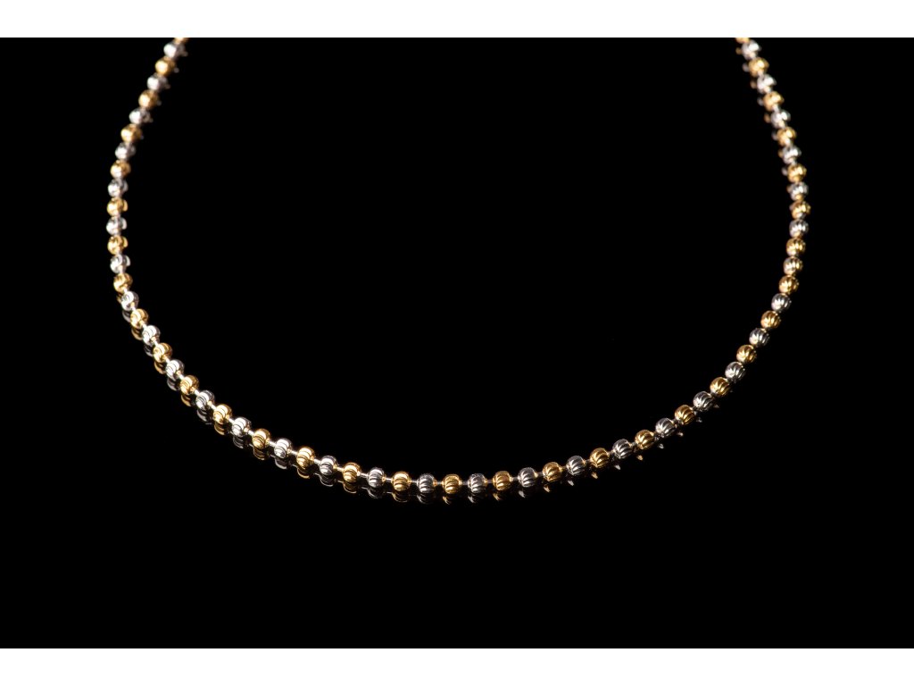 Náhrdelník kuličky, stříbrno - zlatý (rhodium), 50 cm
