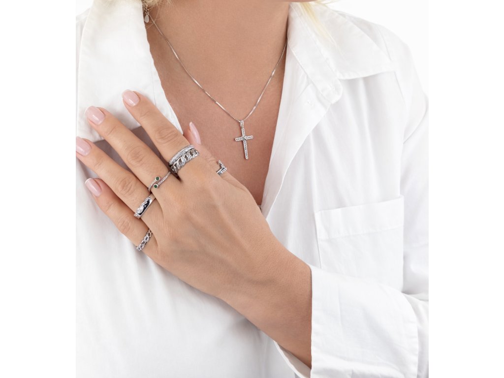 Elegantní stříbrný náhrdelník s minimalistickým přívěskem ve tvaru křížku je nadčasovým šperkem s jemným symbolickým významem. Křížek je zdoben drobnými zirkony, které mu dodávají decentní lesk a podtrhují jeho čisté linie. Přívěsek je zavěšen na hladkém, pevném řetízku, který krásně sedí na krku a je příjemný na každodenní nošení. Náhrdelník se skvěle hodí jak k jednoduchým outfitům, tak i jako jemný doplněk ke slavnostnějším příležitostem. Ideální volba pro ženy, které hledají elegantní šperk s významem, nebo jako vkusný dárek.