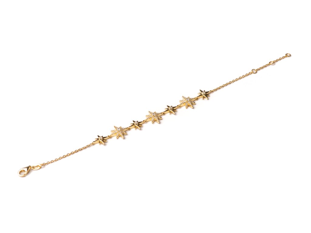 Náramek s hvězdičkami a zirkony, pozlacený (rhodiovaný) - 16,5 - 19,5 cm