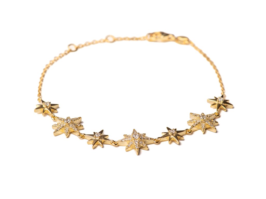 Stříbrný náramek s motivem hvězd, zdobený třpytivými zirkony. Jemný a elegantní šperk vhodný pro každodenní nošení i slavnostní příležitosti. Nadčasový doplněk, který rozzáří každý outfit.