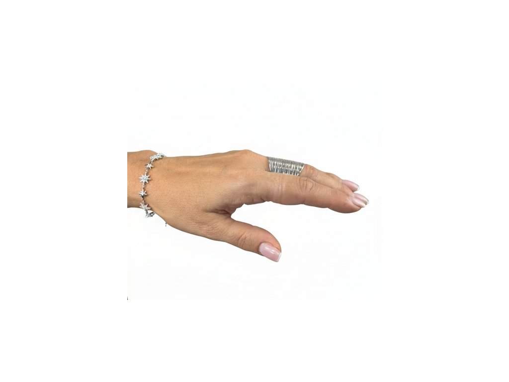Stříbrný náramek s motivem hvězd, zdobený třpytivými zirkony. Jemný a elegantní šperk vhodný pro každodenní nošení i slavnostní příležitosti. Nadčasový doplněk, který rozzáří každý outfit.