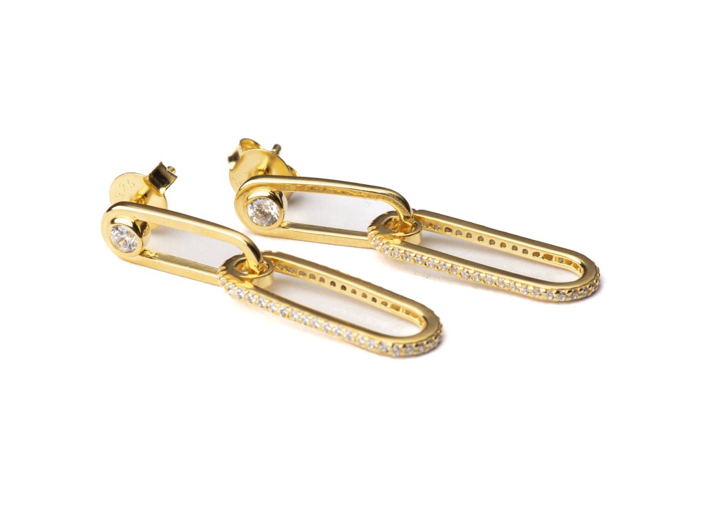 Exkluzivní visací náušnice jsou precizně osazeny třpytivými zirkony po celé délce oválného očka. Sofistikované zapínání na puzetu zajišťuje elegantní a bezpečné nošení.