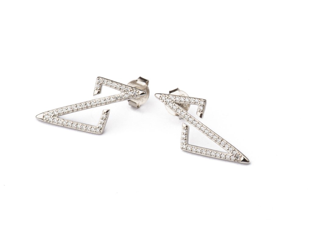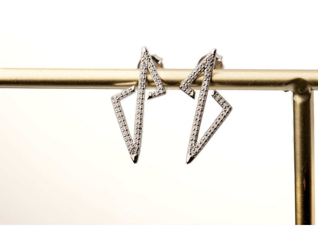 Elegantní stříbrné náušnice ve tvaru blesku, zdobené jemnými zirkony. moderní design, který dodá každému outfitu výraz a jiskru.