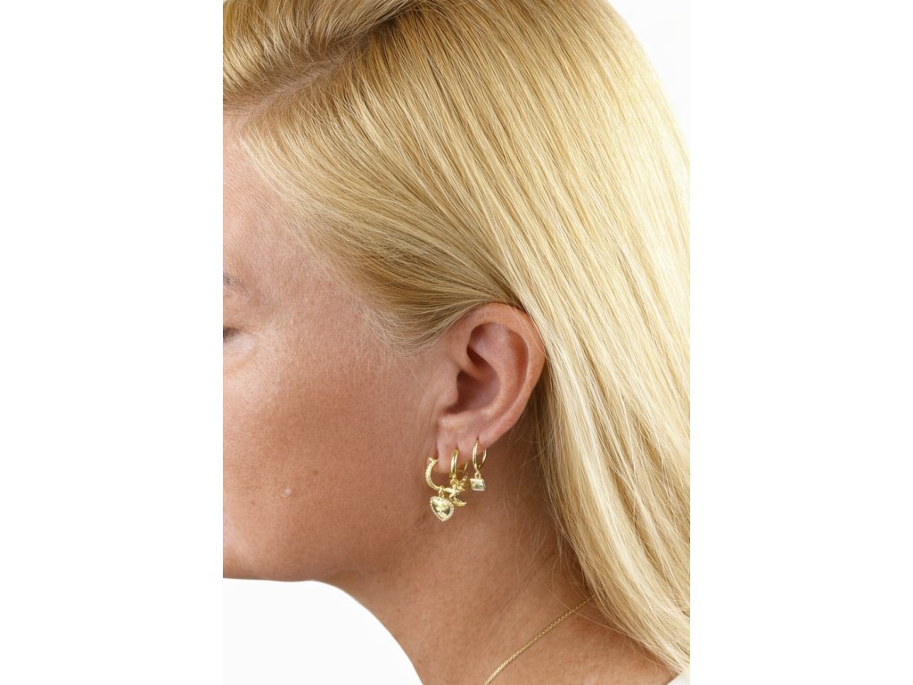 Moderní pozlacené stříbrné náušnice zaujmou kombinací klasických kroužků a drobných visacích přívěsků, které dodávají šperku osobitý a hravý charakter. Symboly jako křížek, měsíc, hvězda či drobné dekorativní tvary jsou pečlivě zpracované, některé z nich osazené čirými zirkony pro jemný lesk. Díky pohyblivým přívěskům působí náušnice dynamicky a elegantně zároveň. Jsou ideální pro každodenní nošení i jako výrazný detail k večernímu outfitu a skvěle se kombinují s dalšími stříbrnými šperky.