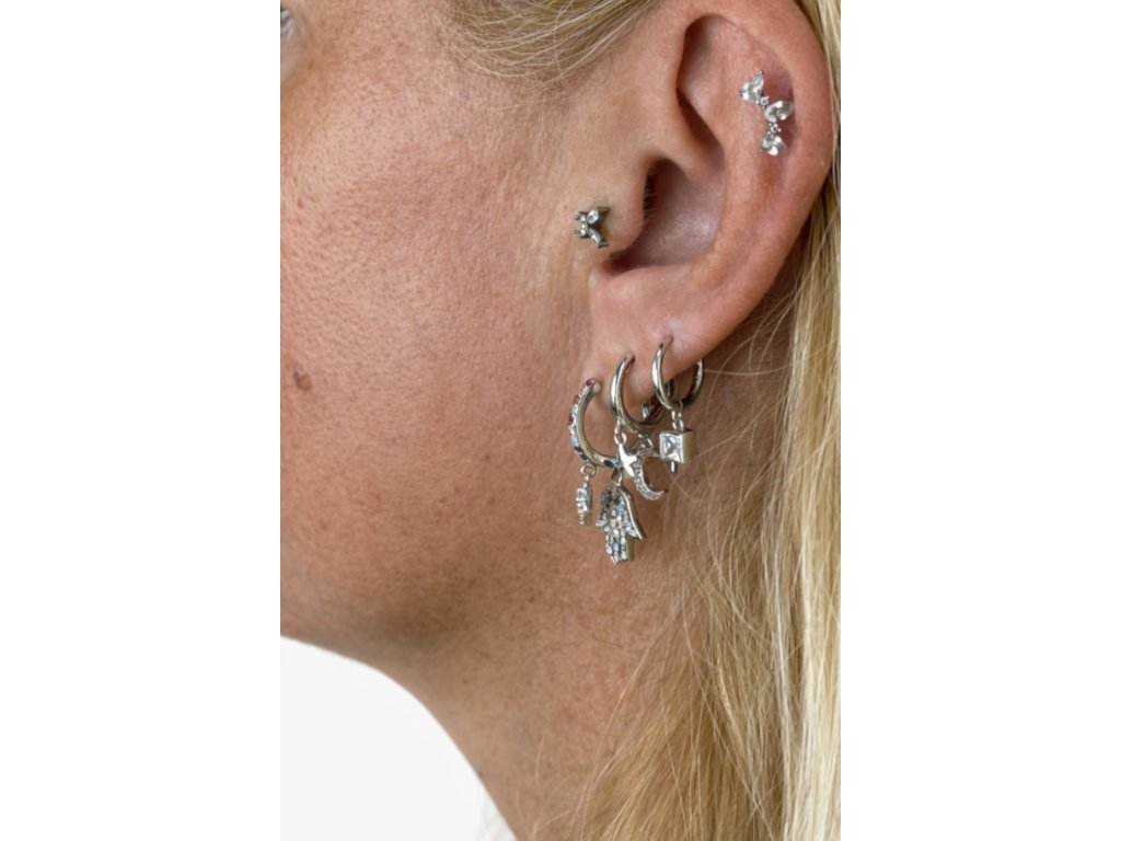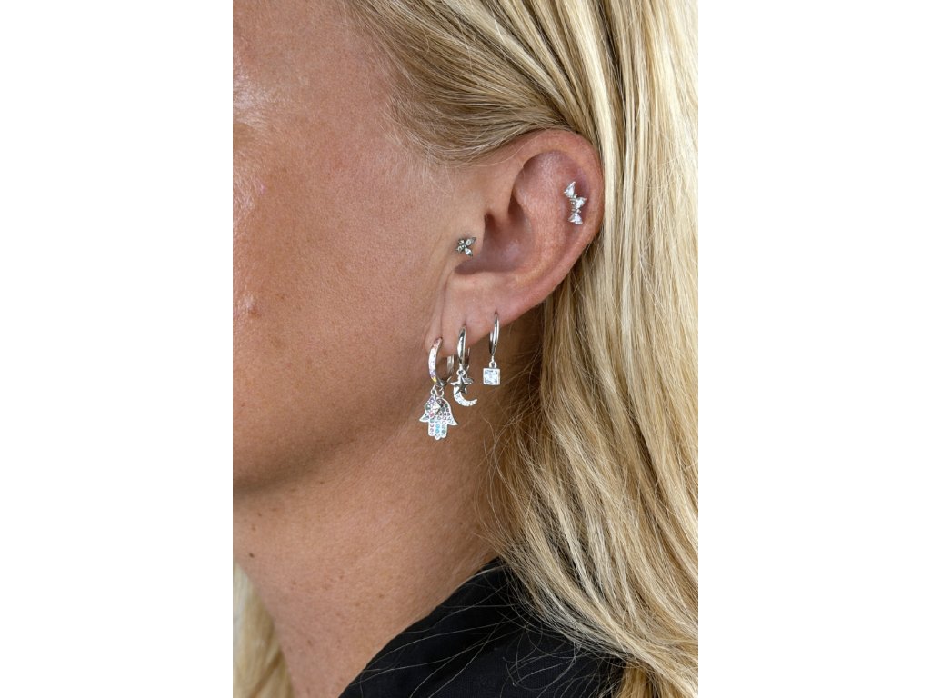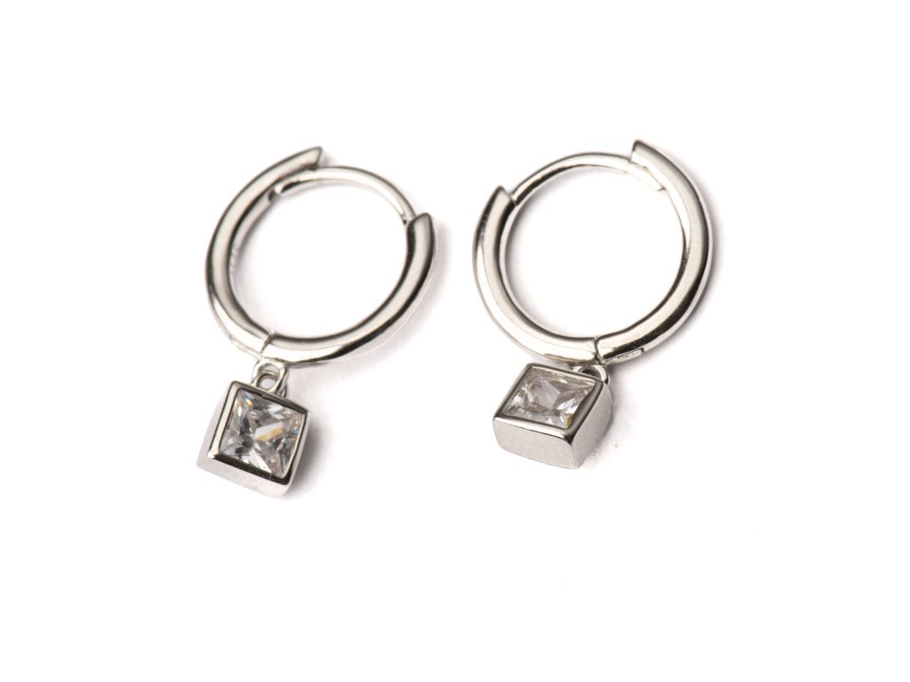Tyto náušnice spojují moderní design s nadčasovou elegancí. Klasický kruh je ozvláštněn visícím čtvercem, jehož oslnivý zirkon zachycuje světlo a dodává šperku luxusní třpyt. Perfektní volba pro večerní i denní outfit, který ocení každý milovník sofistikovaného stylu.