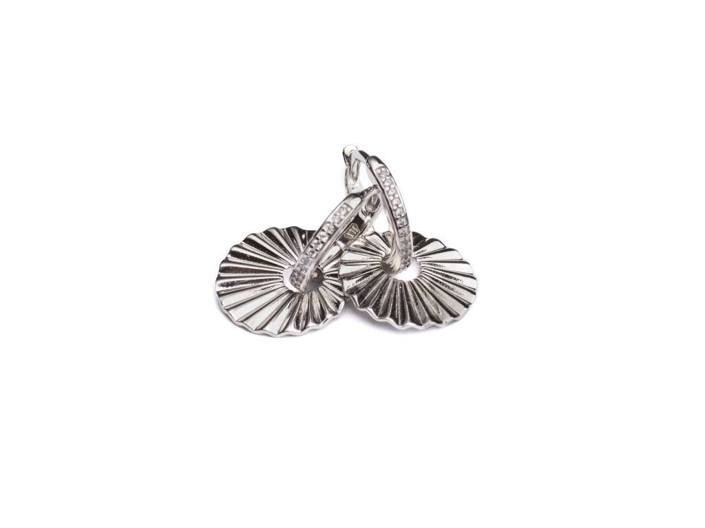 Působivé náušnice zaujmou kombinací jemného kroužku osazeného zirkony a dekorativního vějířového přívěsku se strukturovaným povrchem. Stříbrné provedení dodává šperku luxusní vzhled, zatímco precizní detaily vytvářejí krásnou hru světla při každém pohybu. Náušnice jsou ideální volbou pro ženy, které chtějí vyniknout – skvěle doplní jednoduchý outfit i elegantní večerní šaty. Díky pohodlnému zapínání se příjemně nosí a stanou se výrazným, ale stále vkusným doplňkem vaší šperkovnice.