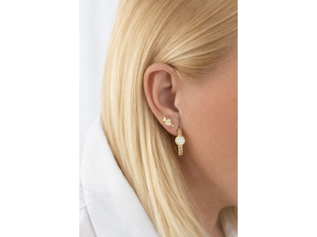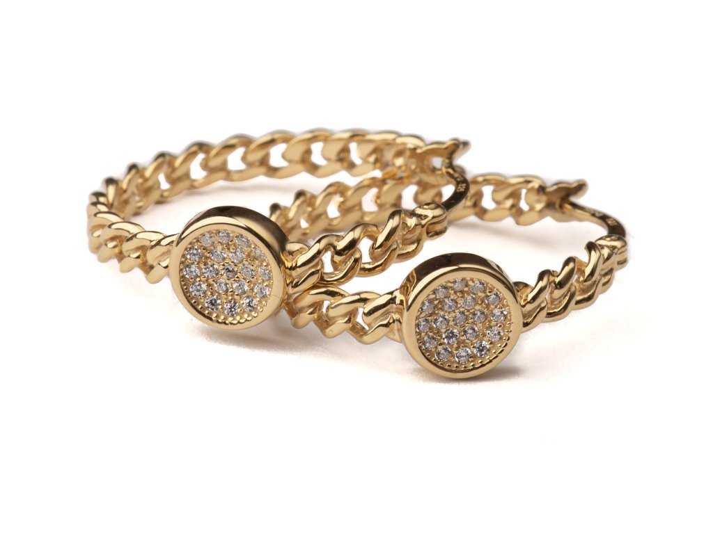 Tyto výjimečné náušnice zaujmou originálním spojením jemného řetízkového motivu a centrálního kruhu osazeného třpytivými zirkony. Precizní zpracování a harmonická kombinace textur vytvářejí luxusní efekt, který přitahuje pozornost, aniž by působil okázale. Náušnice působí elegantně, moderně a nadčasově, díky čemuž se stanou nepřehlédnutelným doplňkem jak večerních outfitů, tak sofistikovaného denního stylu.
