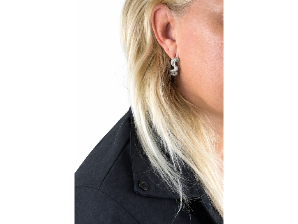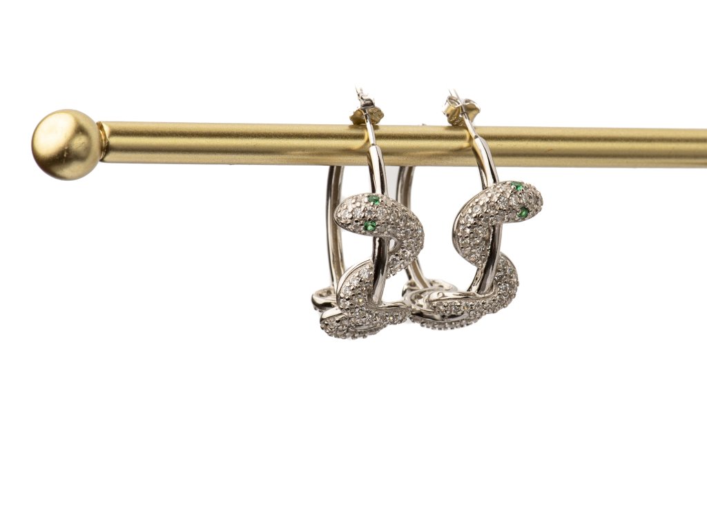 Elegantní stříbrné náušnice ve tvaru hada, zdobené jemně třpytivými zirkony, které podtrhují smyslnost a nadčasový luxus. Perfektní šperk pro výrazný, ale sofistikovaný vzhled.
