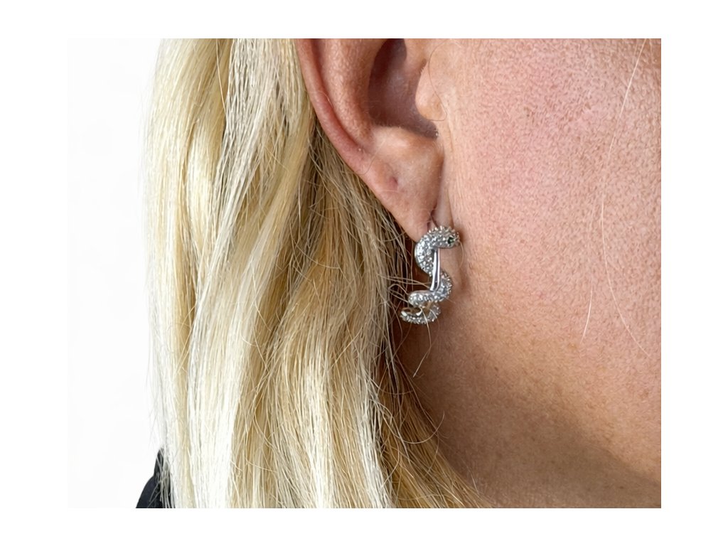 Náušnice - kruhy - stočený had se zirkony, stříbrné (rhodium) - Ø 2,5 cm