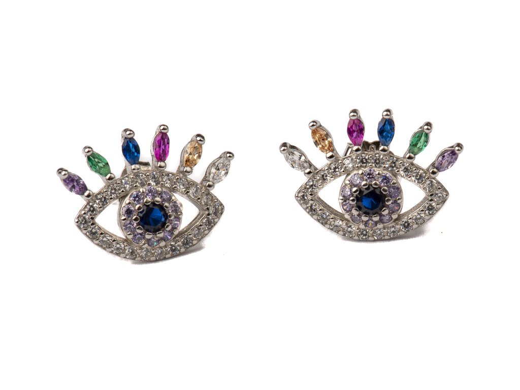 Náušnice - oko barevné, se zirkony, stříbrné (rhodium) - 1,5 cm