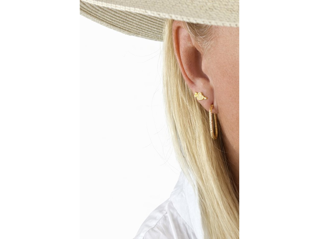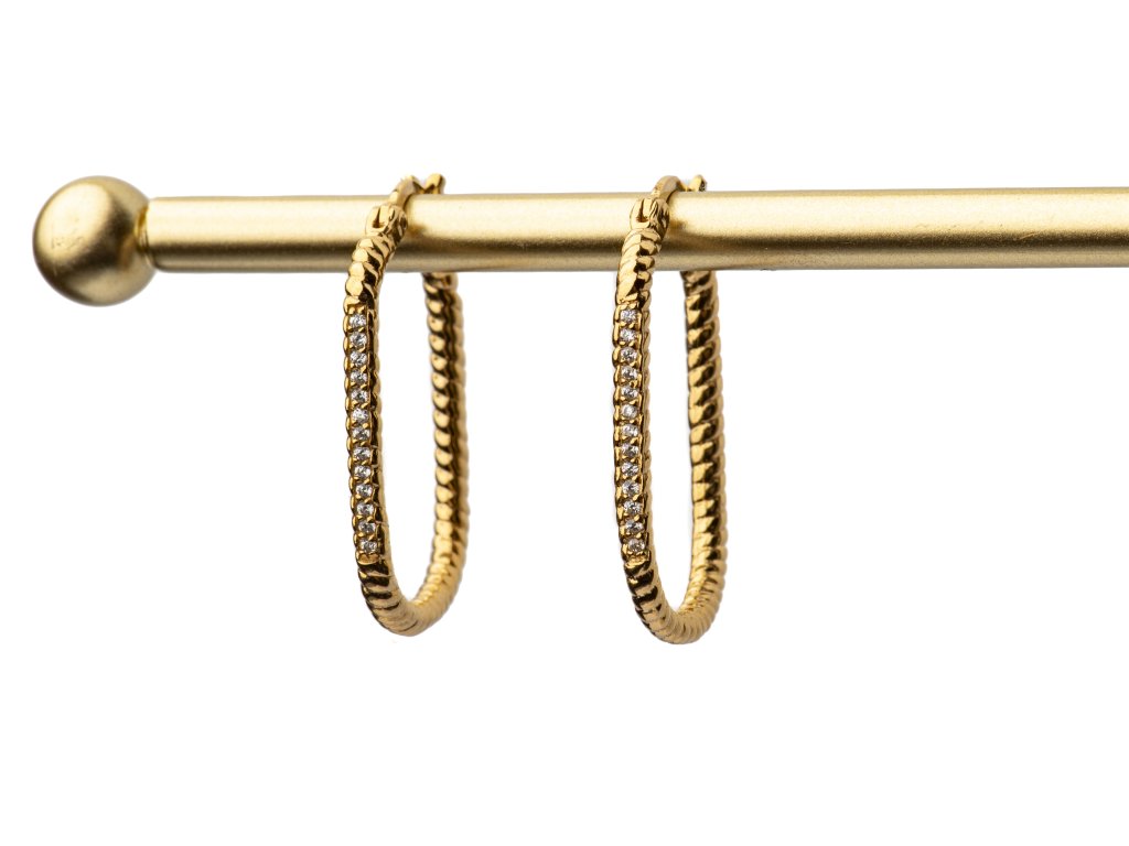 Pozlacené oválné náušnice zdobené třpytivými zirkony, které podtrhují ženskost a nadčasový styl.