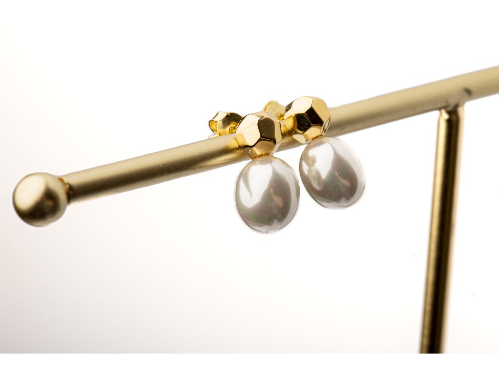 Elegantní náušnice s perlou a geometrickým vzorem spojují nadčasovou klasiku s moderním designem.