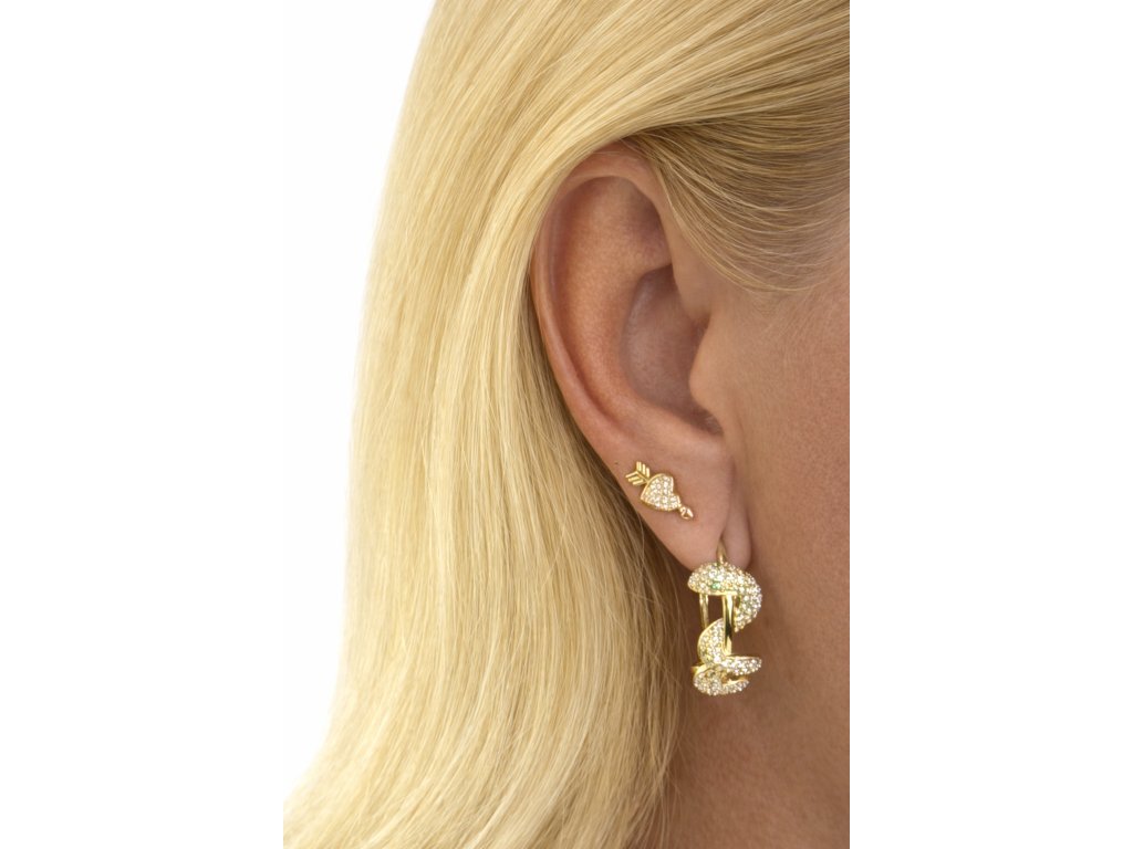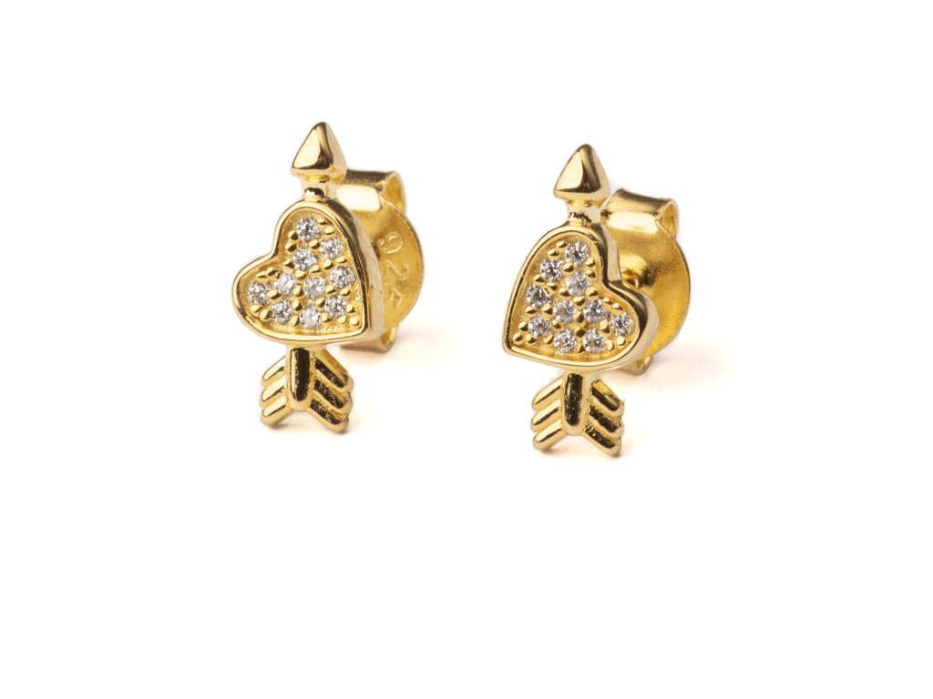 Náušnice - srdíčko s šípem a zirkony, pozlacené (rhodium) - 1 cm