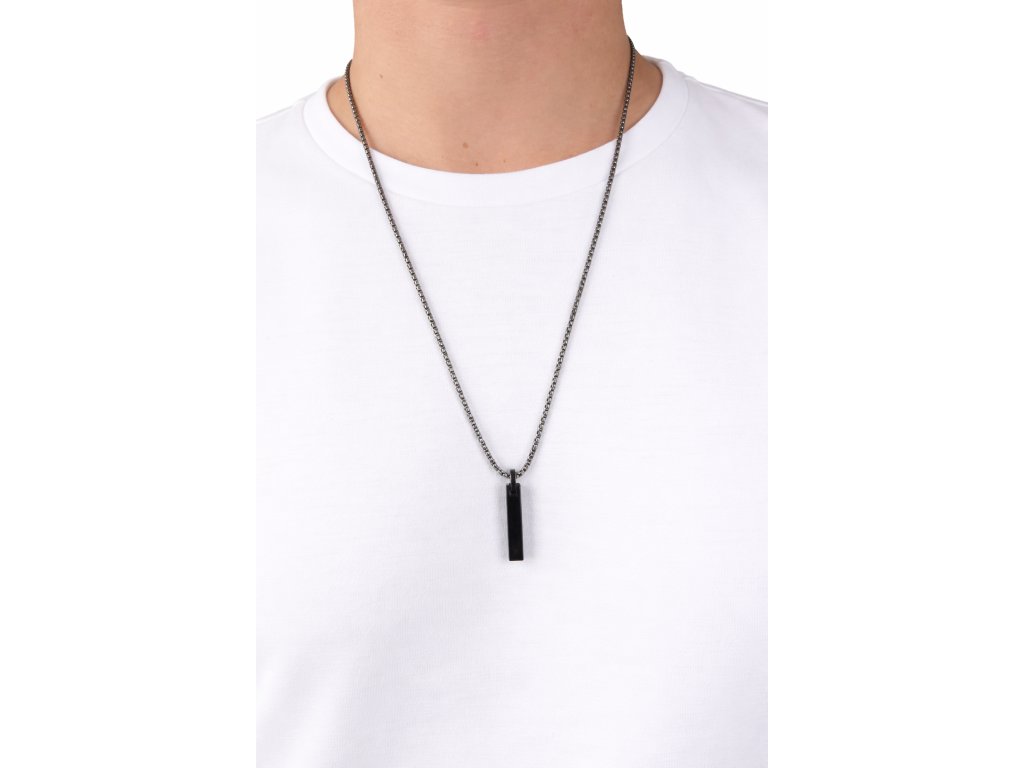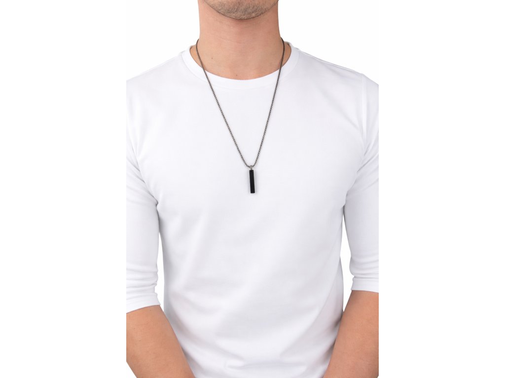 Pánský náhrdelník, černo - stříbrný řetízek, černý přívěsek z ušlechtilé chirurgické oceli