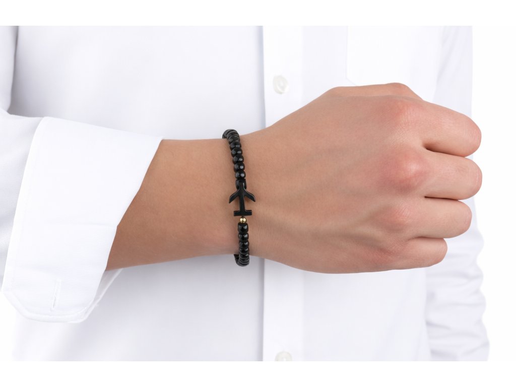 Pánský náramek s kotvou, onyxové kameny - 19 cm