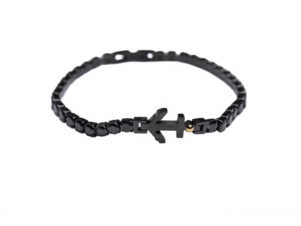 Minimalistický náramek s motivem kotvy v hlubokém černém provedení – symbol stability, síly a nadčasové elegance.