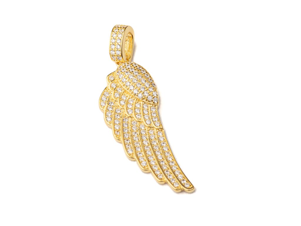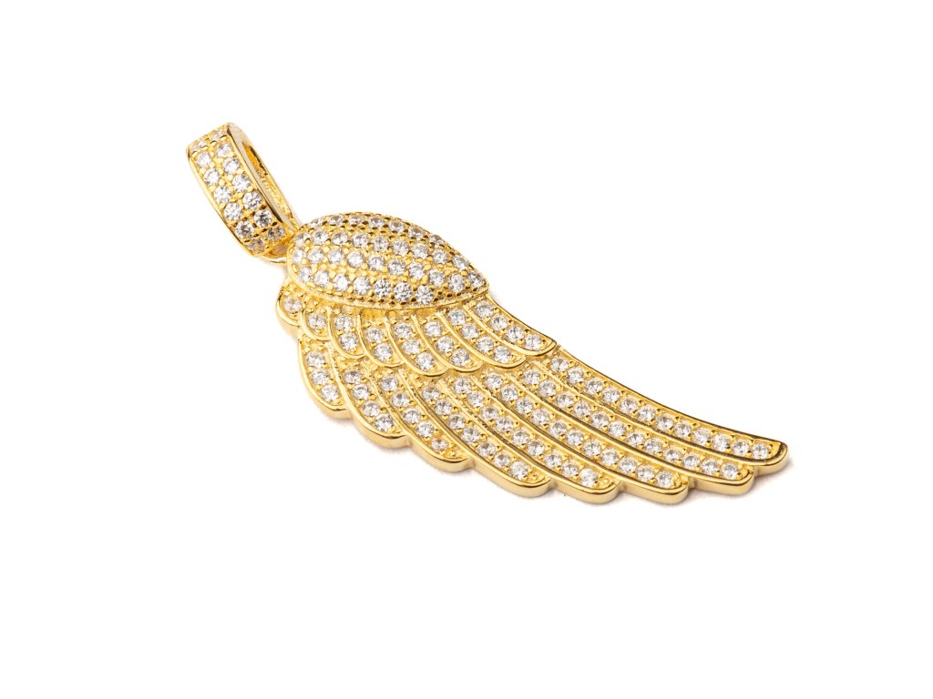 Přívěsek andělské křídlo, se zirkony, pozlacené (rhodium) - 4 cm