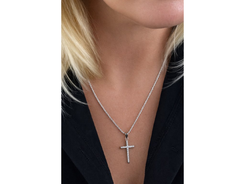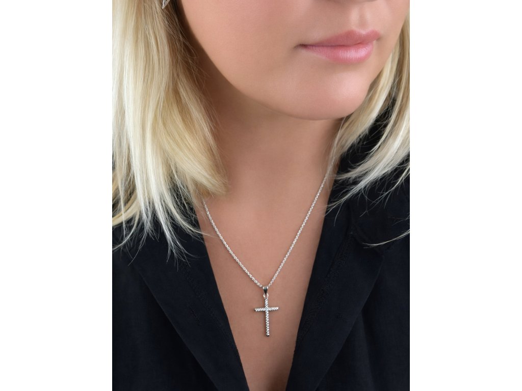 Křížek okouzlí precizním osazením zářivých zirkonů, které dodávají šperku jemný, ale výrazný třpyt. Čisté linie a vyvážený design z něj činí nadčasový doplněk, který se snadno kombinuje s každodenním i slavnostním outfitem. Symbolika kříže v kombinaci s luxusním zpracováním vytváří šperk, jenž působí elegantně, vkusně a exkluzivně.