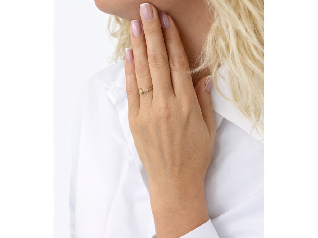 Originální pozlacený stříbrný prsten s motivem hvězdy a planety, zdobený třpytivými zirkony, vnese do vašeho stylu jemnou hravost a luxusní lesk.