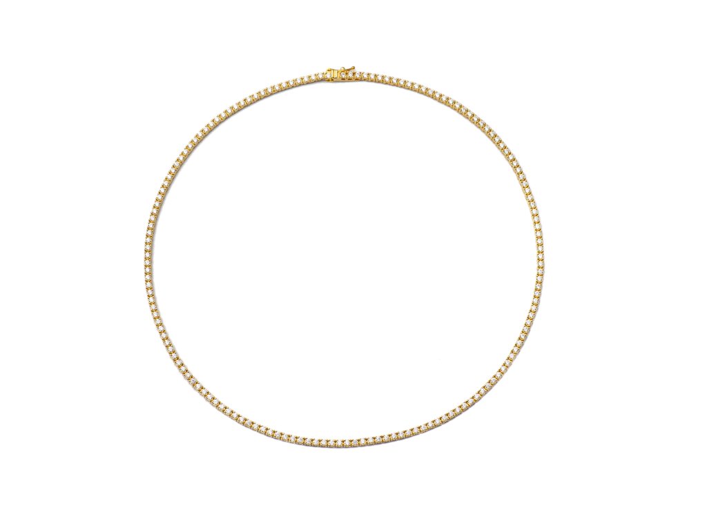 Tenisový náhrdelník okouzlí precizním řazením zářivých bílých zirkonů, které zachycují světlo z každého úhlu a vytvářejí luxusní třpyt. Minimalistický, ale výrazný design zajišťuje nadčasovou eleganci, díky které je šperk ideální pro každodenní nošení i slavnostní příležitosti. Precizní zpracování a jemná harmonie jednotlivých kamenů dává náhrdelníku sofistikovaný a exkluzivní charakter, který podtrhne ženskost a vytříbený styl.